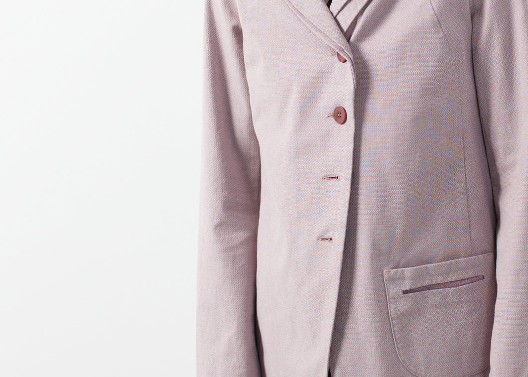 Pretty in pink, the Resine Jacket presents a sophisticated look through tailoring. Button placket closure at front. Double layered lapel. Pocket at left front. Lined. Lilith. Color Garnet. 97% Cotton, 3% Spandex, Lining 100%. Ashley is wearing an X-Small.