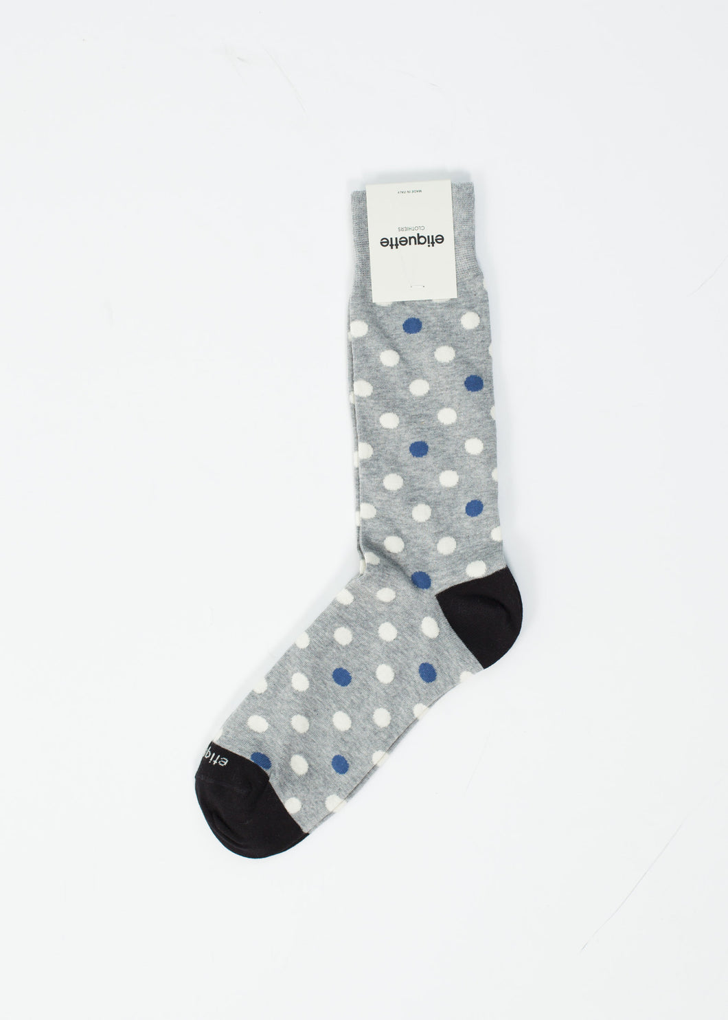 Our new collection of Italy made socks by Etiquette adds some gentlemanly flavor to our men's line. Focused on impeccable craftsmanship, using the highest quality materials, and timeless sophistication that’s fashionable, but always wearable. Color Grey Dot. 100% Cotton. Made in Italy.